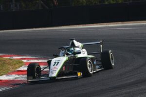 Third place in each GB4 encounter in Kent keeps Hillspeed’s title challenger in the box seat as the category heads into a six week break ahead of the championship finale. There, four races will be contested as round 18 from Brands has been carried over to Donington due to timetable delays.
